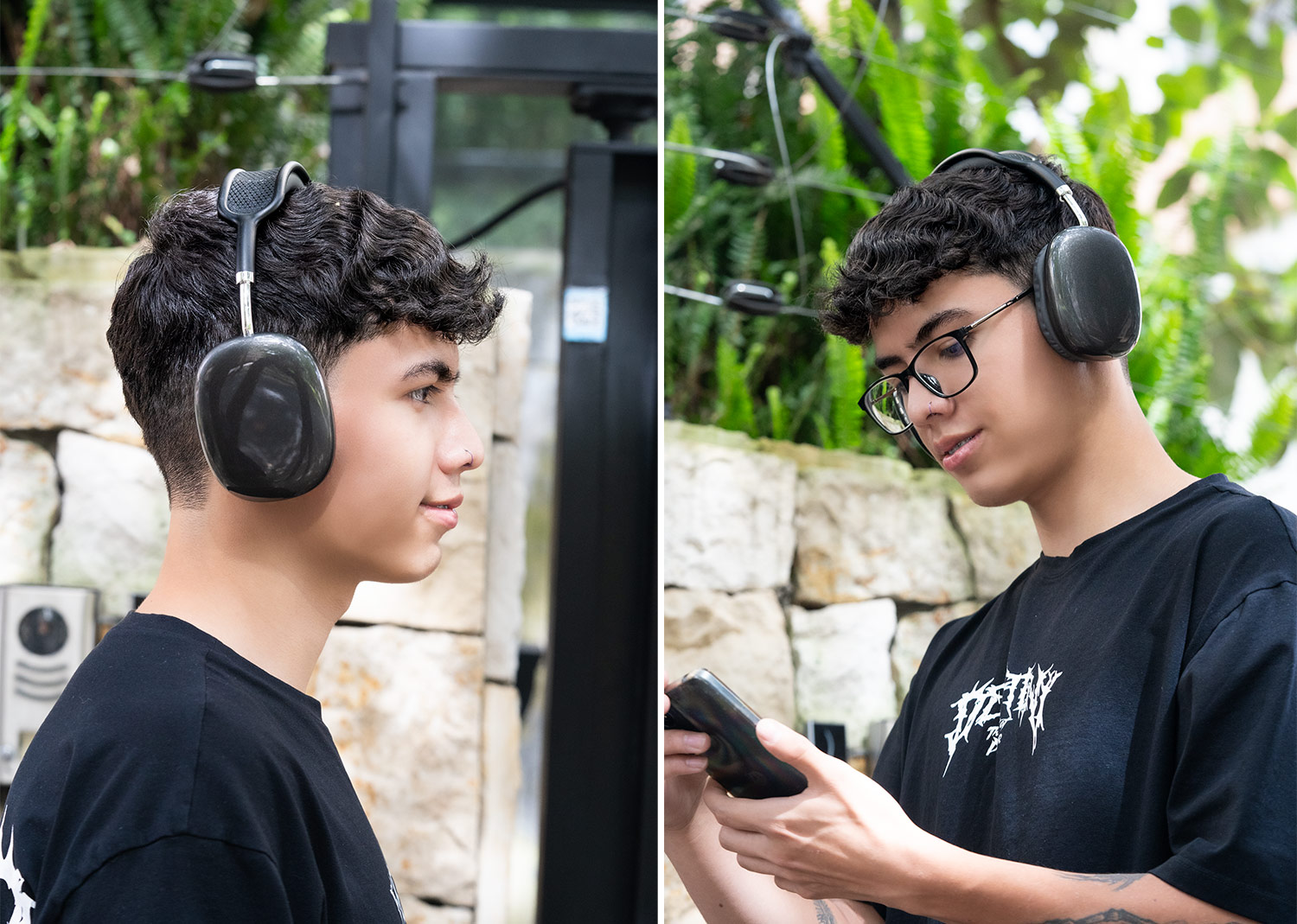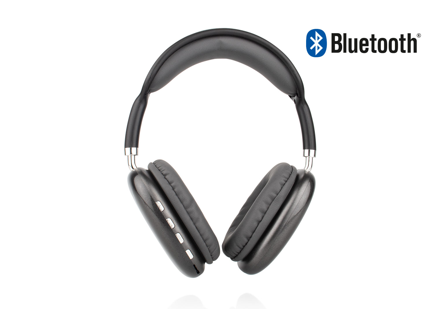 Audífonos Bluetooth 5.3, conector AUX para cable 3.5 mm, compatible con tarjeta TF y radio FM. Tiempo de uso aproximadamente 8 horas, puerto de carga Tipo C. Distancia de trabajo hasta 10 metros.