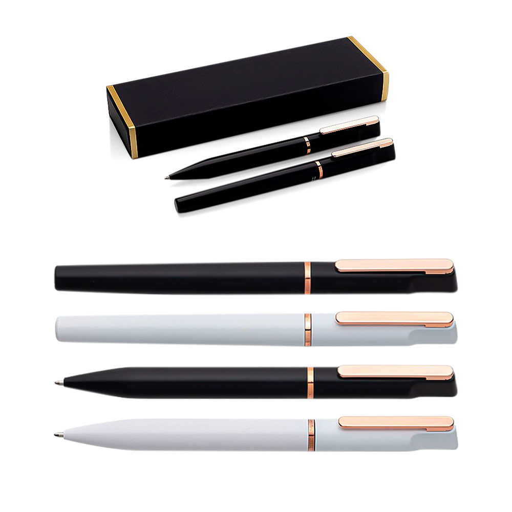 Juego de Bolígrafo de metal de aluminio reciclado más un Bolígrafo rollercon mecanismo de apertura, almacenados en caja. (Bolígrafo/Esfero)