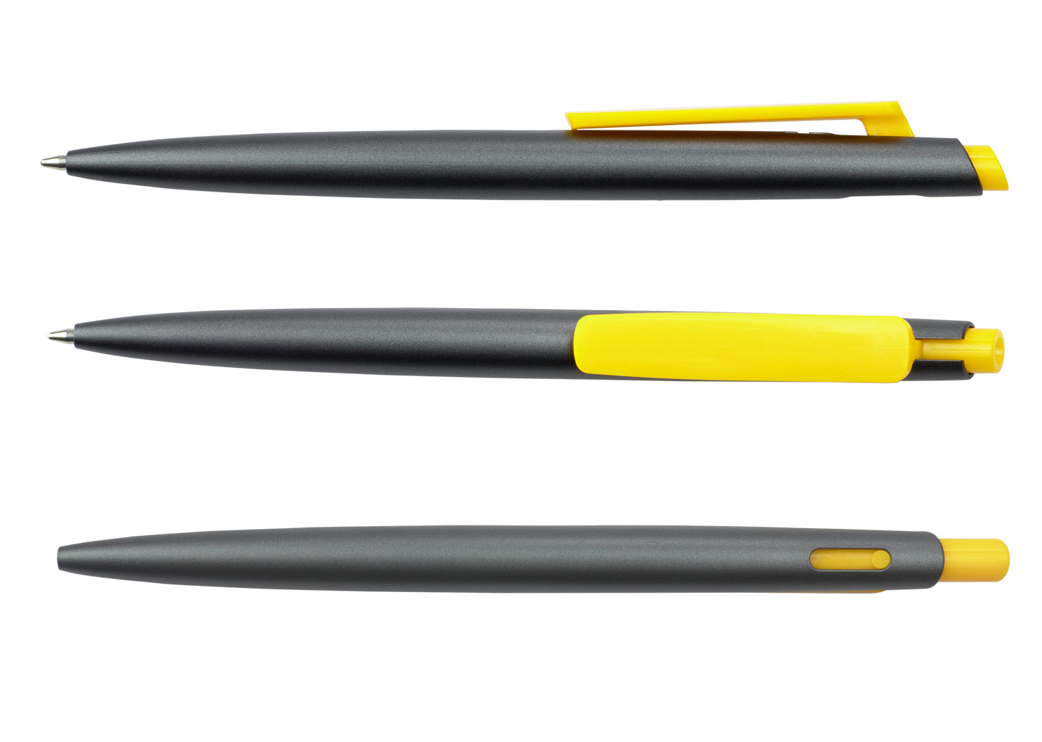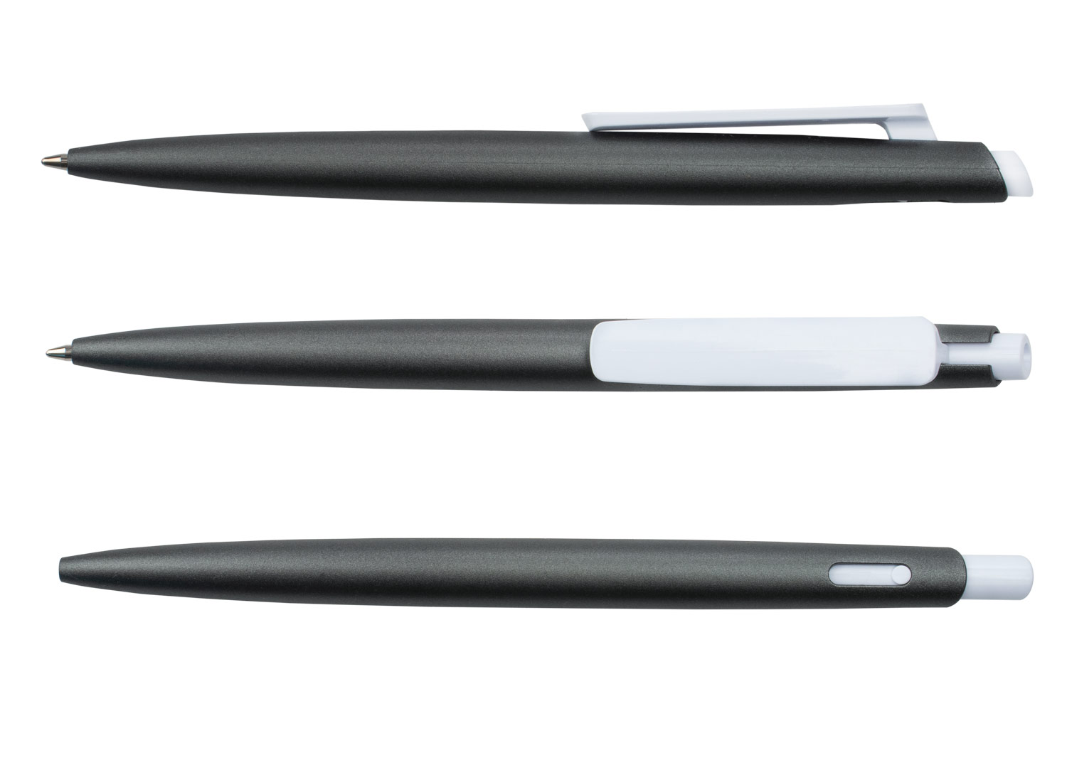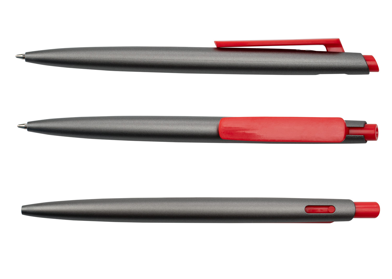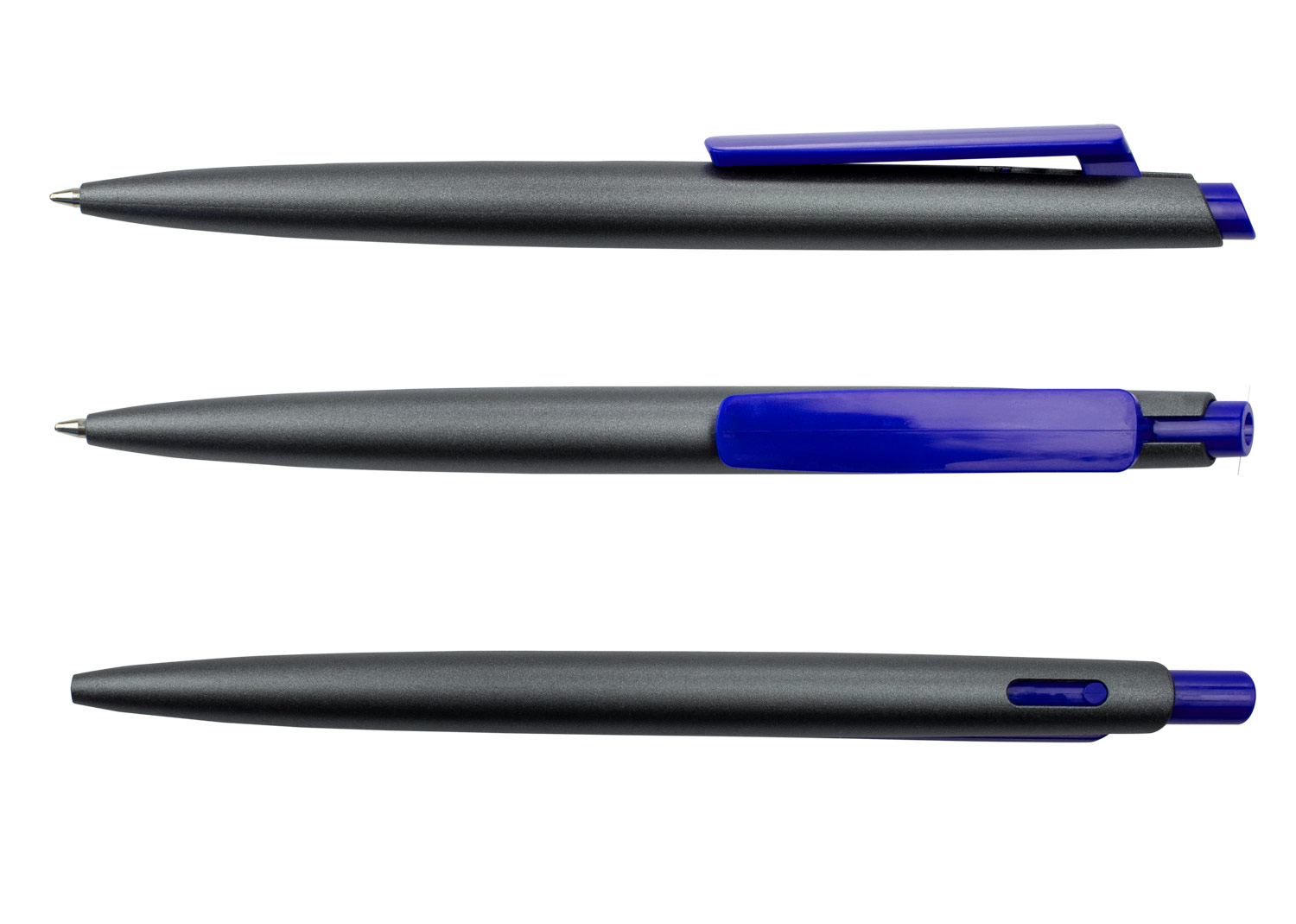 Fabricado en RABS con acabado mate, cuenta con clip y parte superior en color liso. Incorpora un recambio fino de plástico para una escritura ágil y precisa. (Bolígrafo/Esfero)