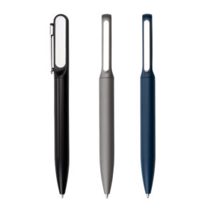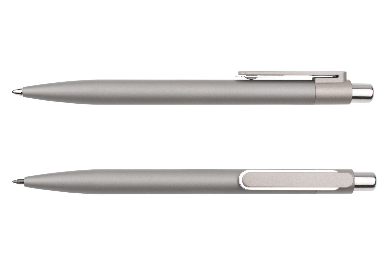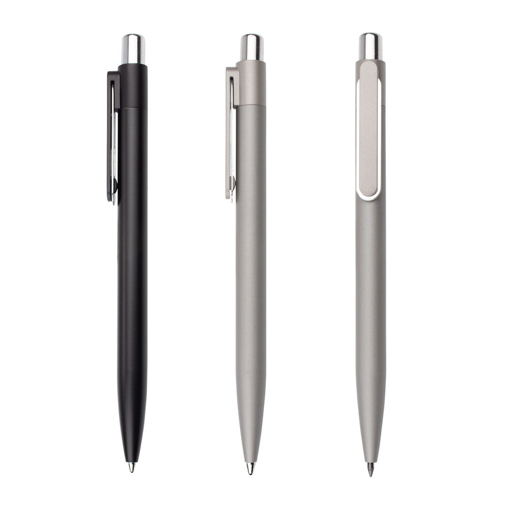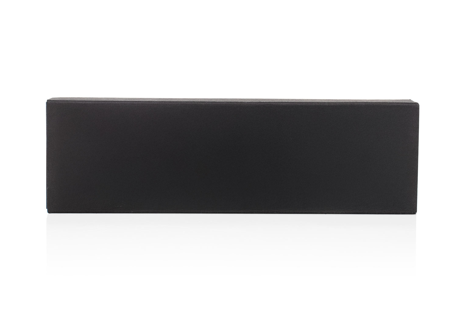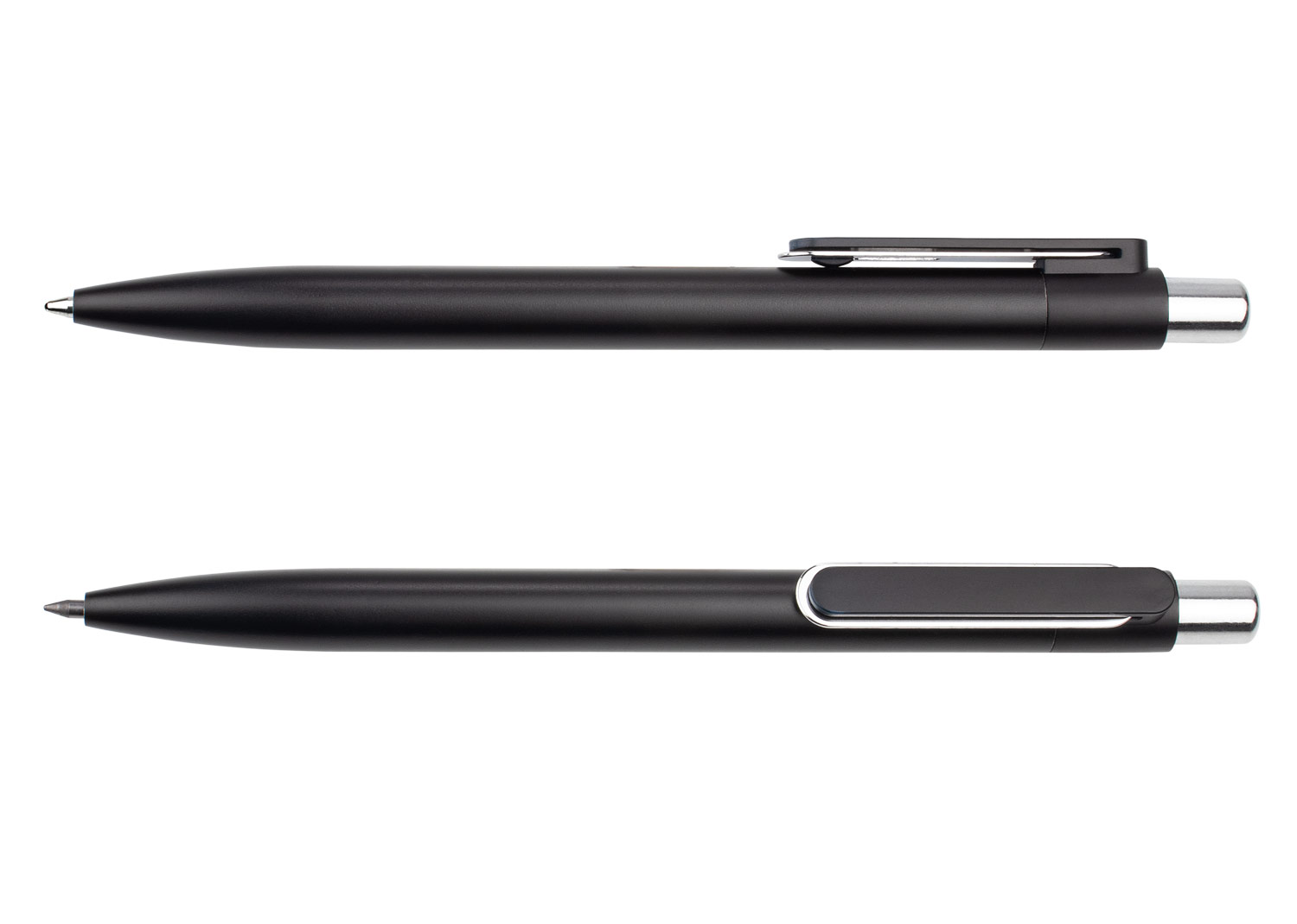 Bolígrafo retráctil de aluminio reciclado, más un lápiz externo de aluminio reciclado empaquetados en caja de cartón negra que se desliza para abrir. (Bolígrafo/Esfero)