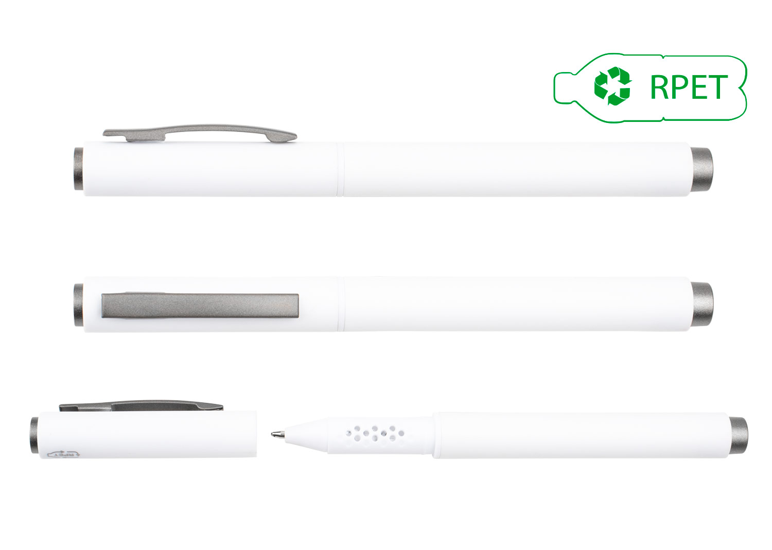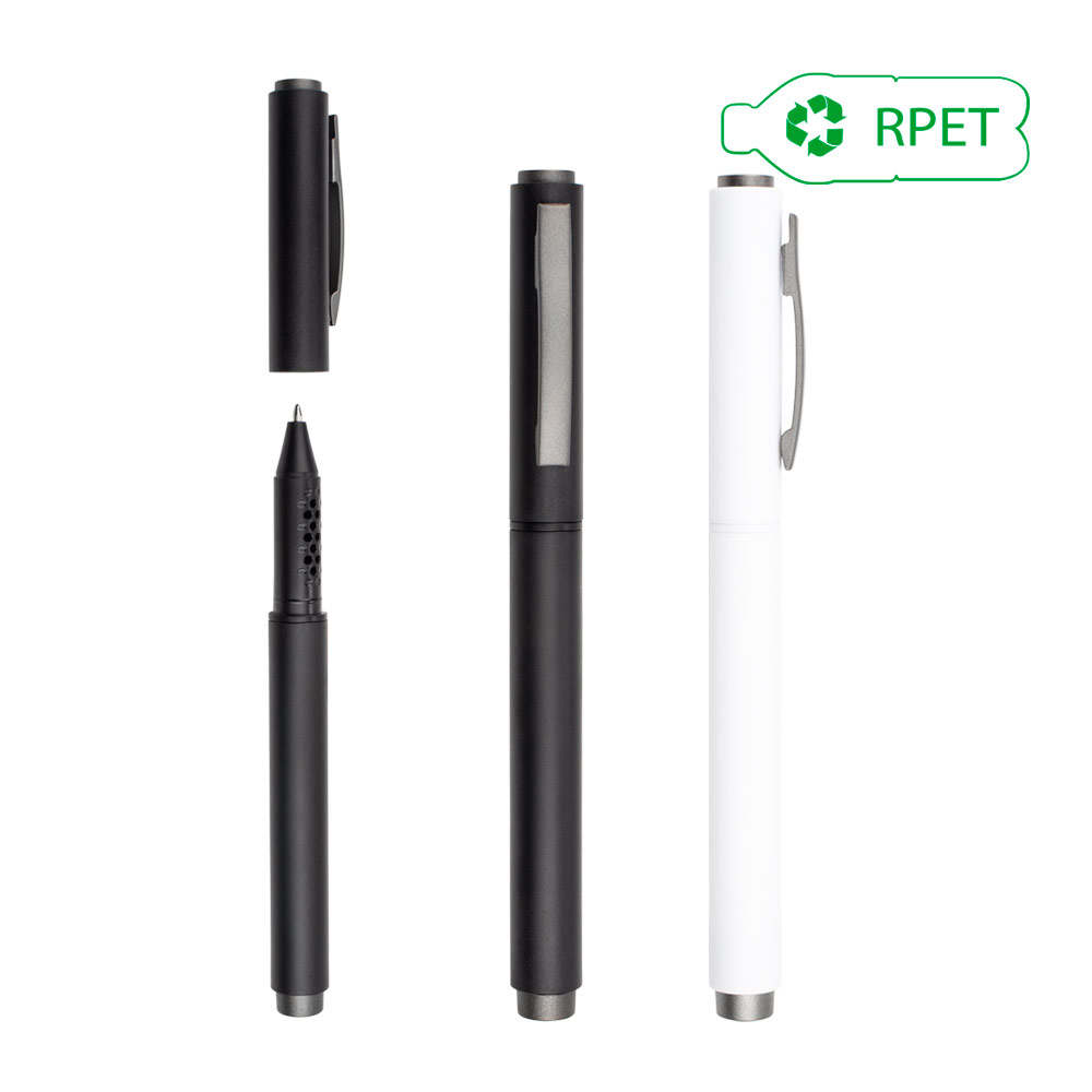 Bolígrafo con cuerpo de color sólido plástico RPET, clip metálico. Tinta de gel. Al retirar la tapa, el bolígrafo cuenta con detalles circulares. (Bolígrafo/Esfero)