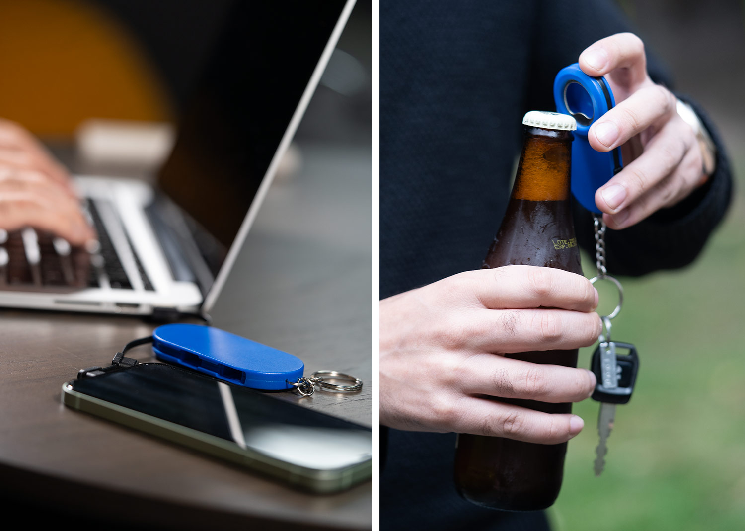 Cables USB y Lightning con forma ovalada más destapador, 5V2A.