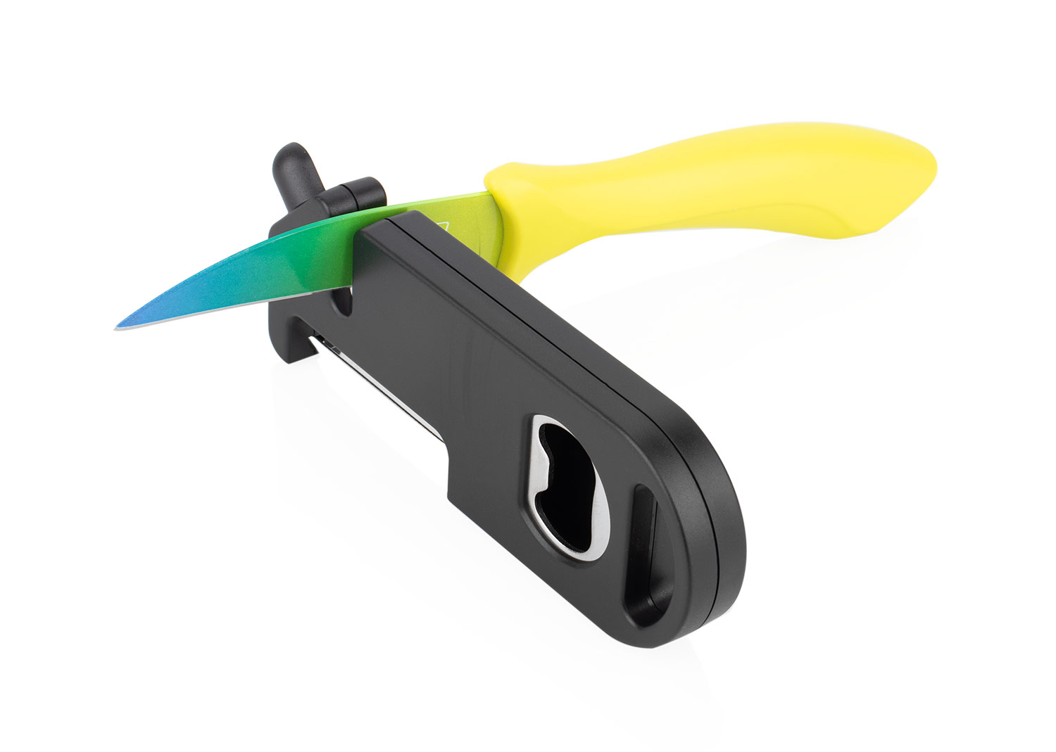 Práctico utensilio elaborado en resistente material ABS, diseñado para ofrecer múltiples funciones en un solo accesorio: incluye abridor de botellas, pelador, cuchara de excavación y afilador. Compacto y versátil, ideal para cocina, camping o actividades al aire libre, combinando funcionalidad y durabilidad.