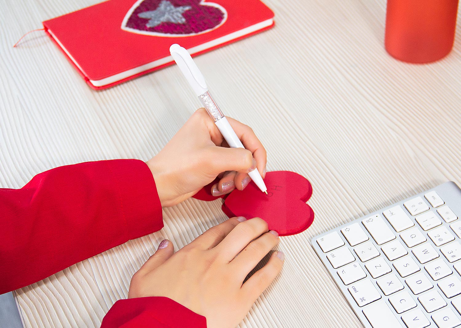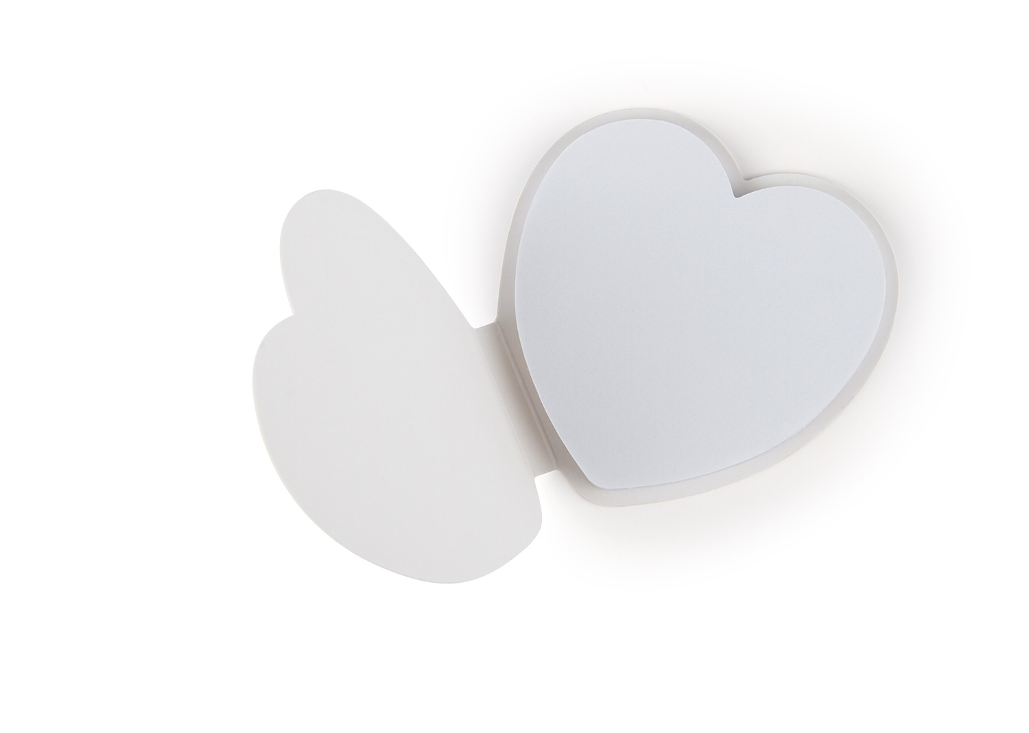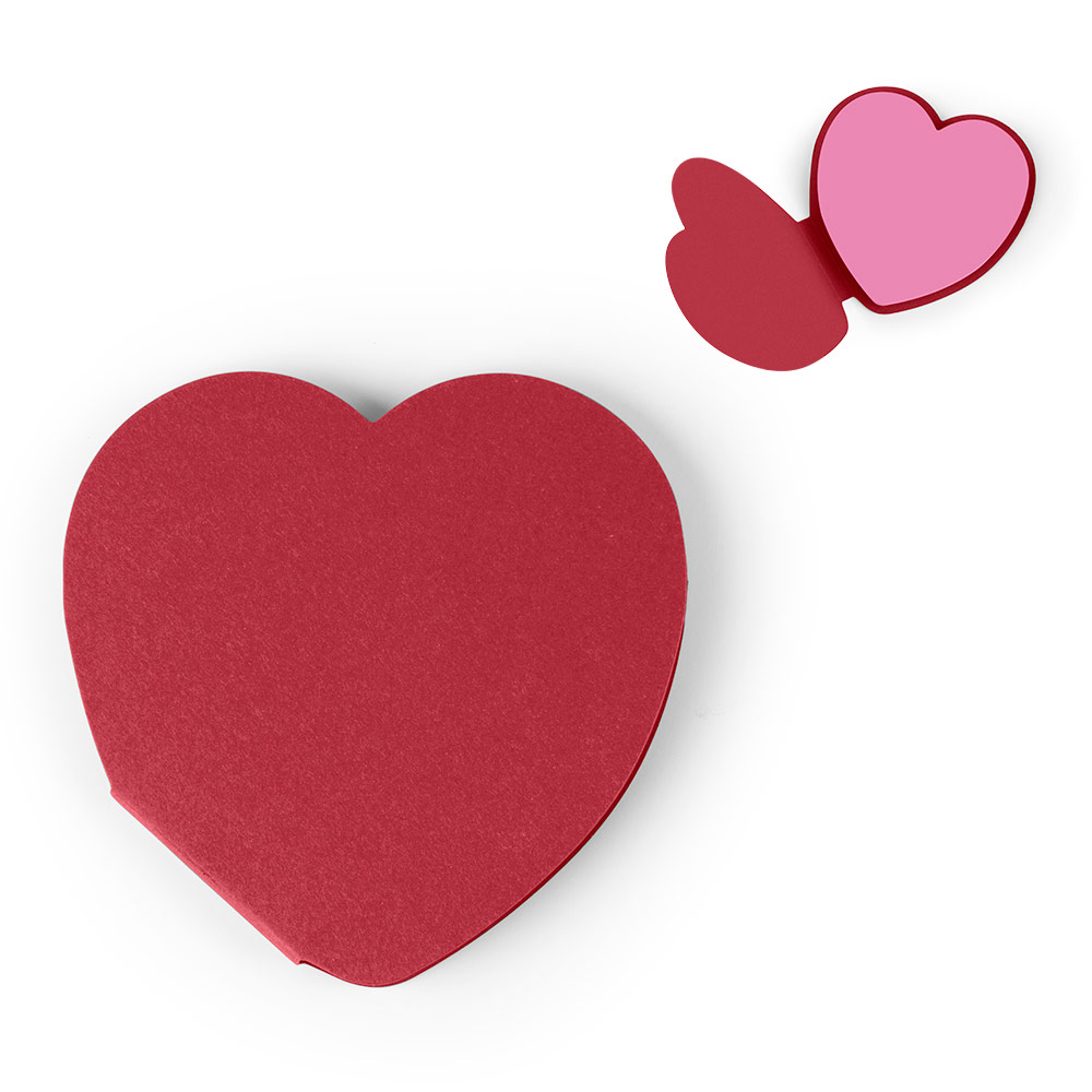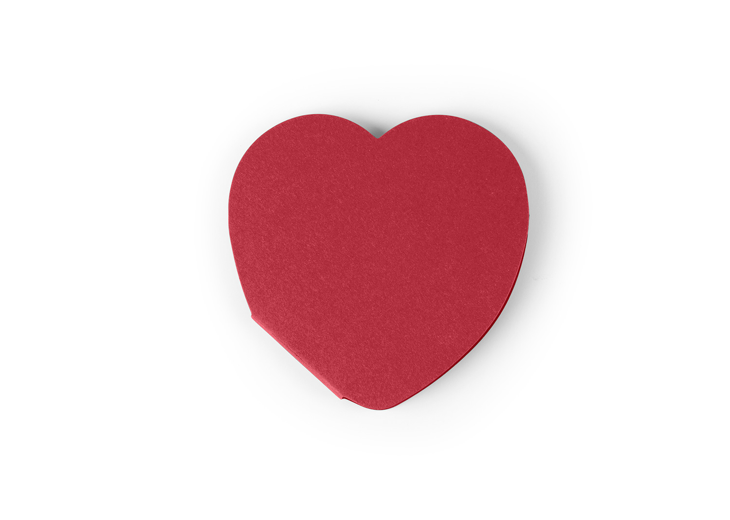 Memo en forma de corazón con 50 notas adhesivas del mismo color de la cubierta.