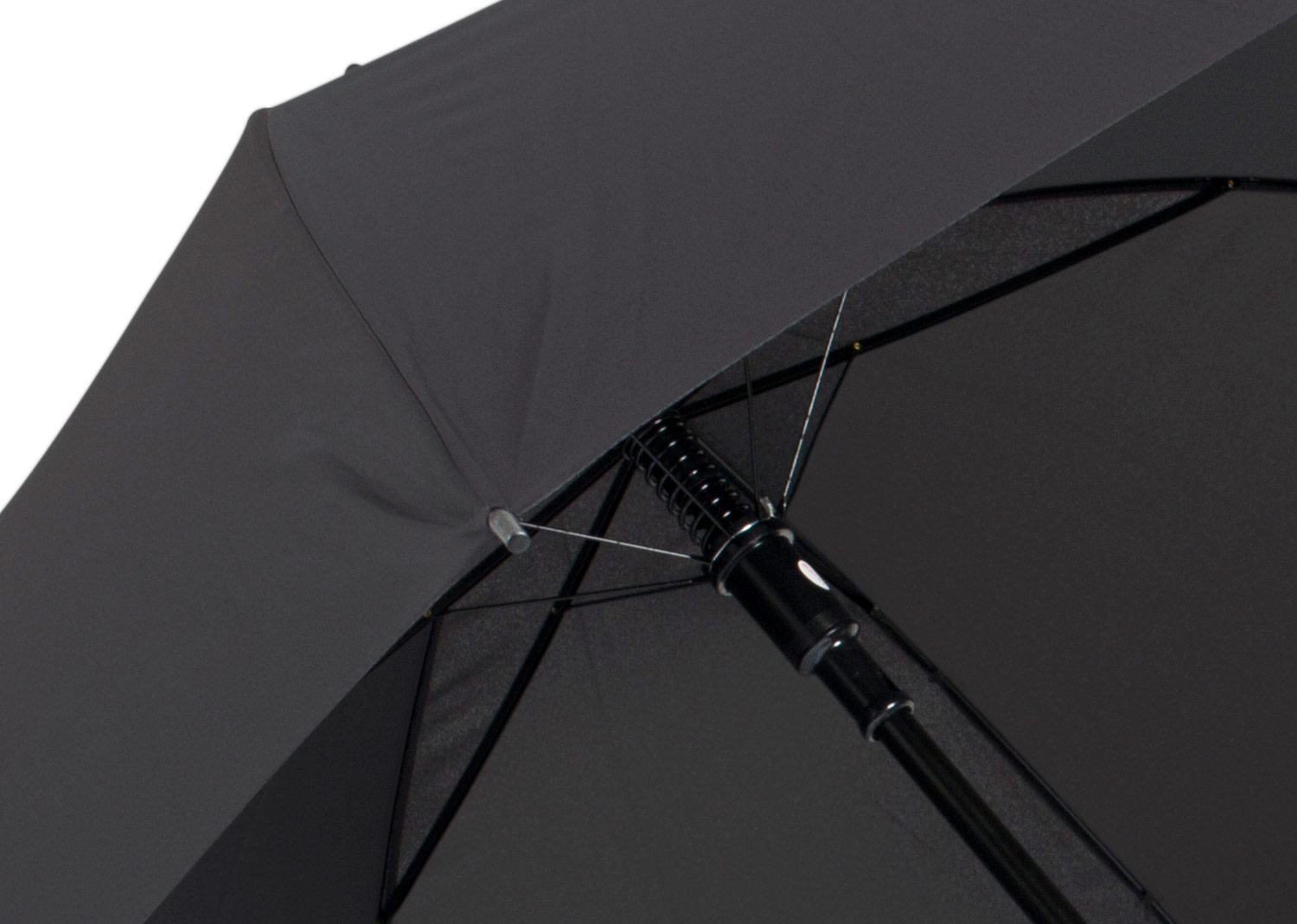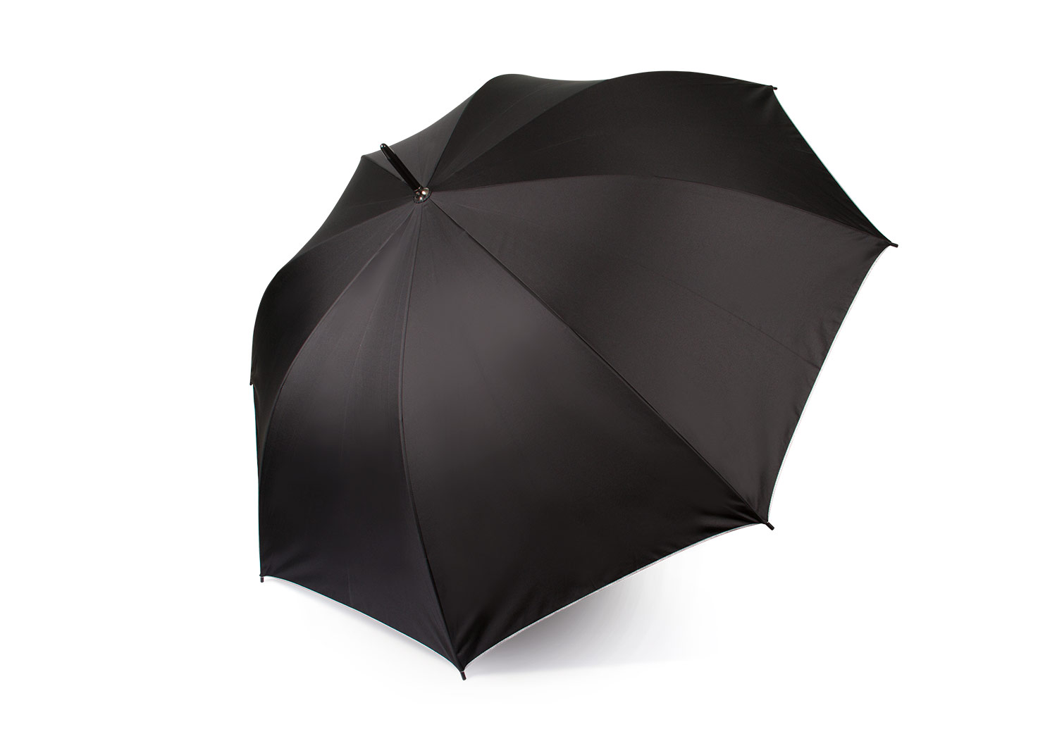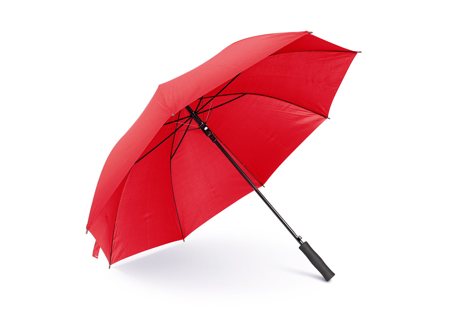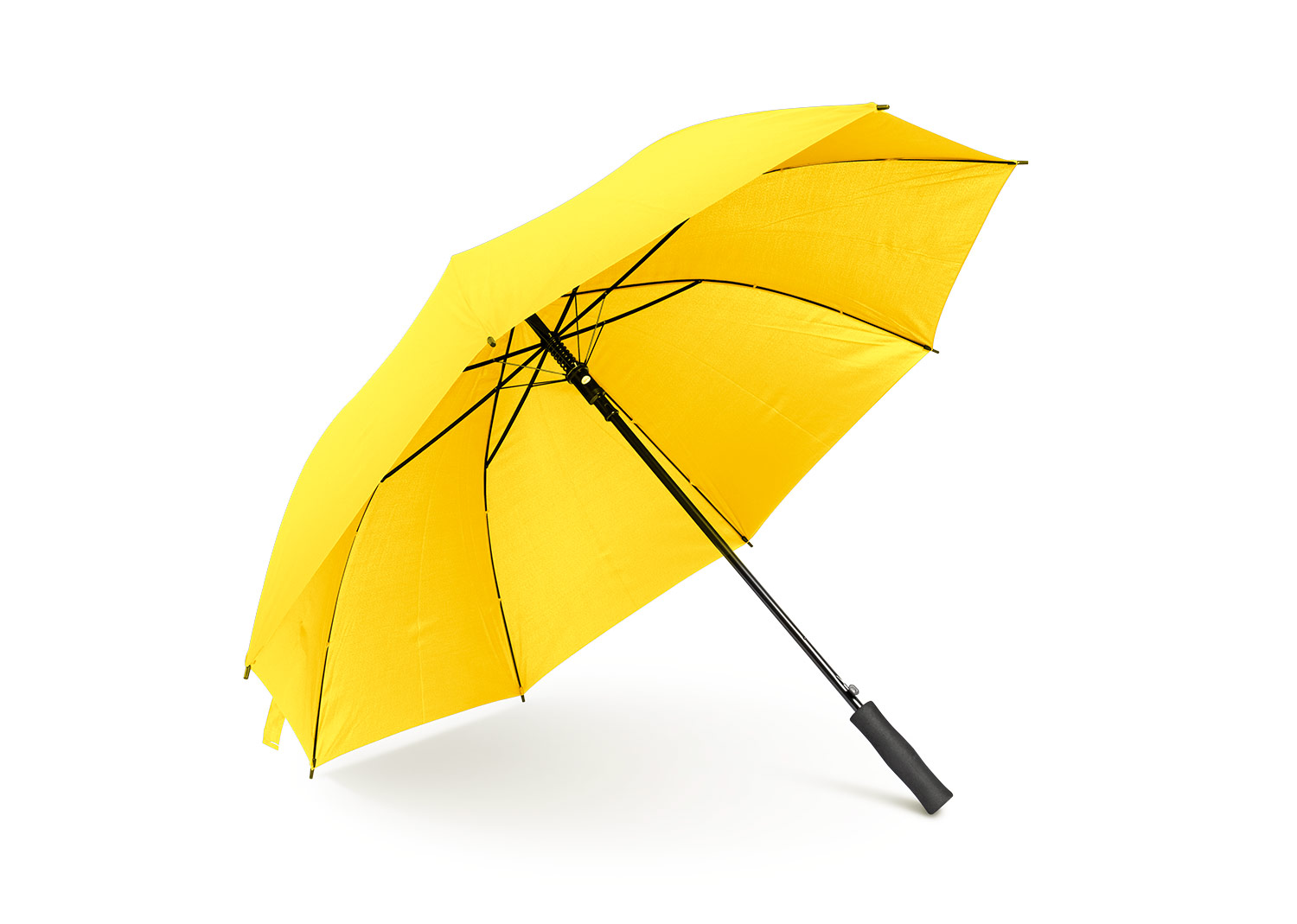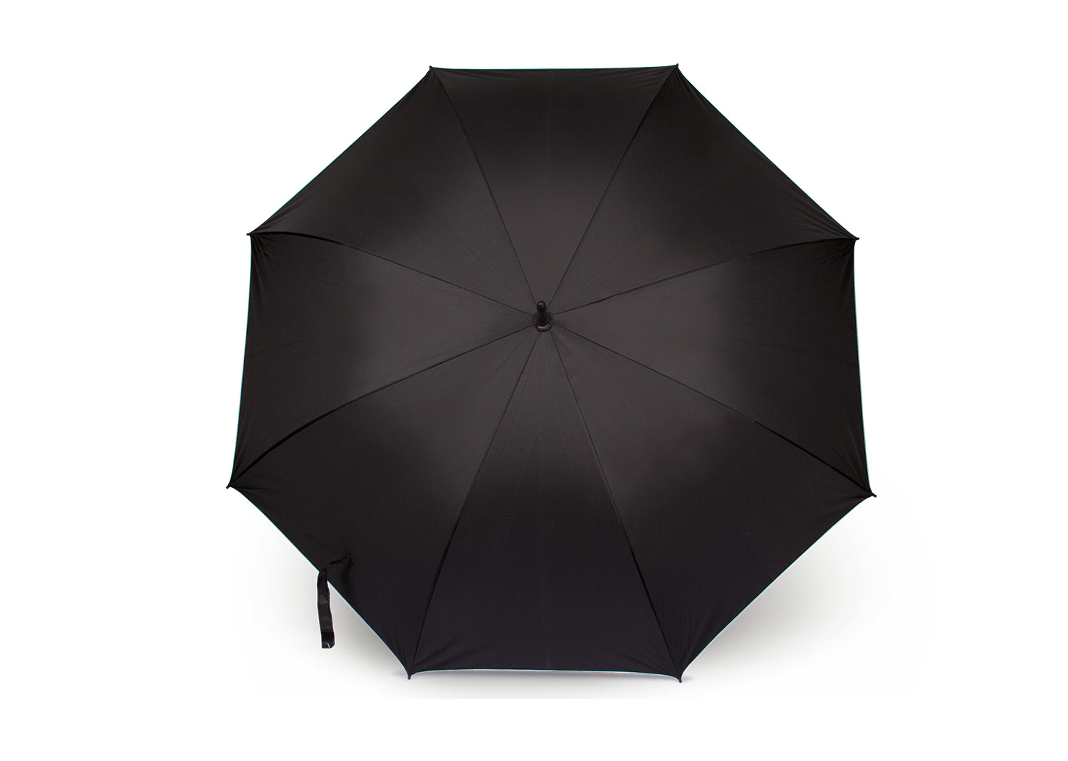 Paraguas tipo Golf mango recto negro. Apertura automática y cierre manual. Costillas con acabados color negro.