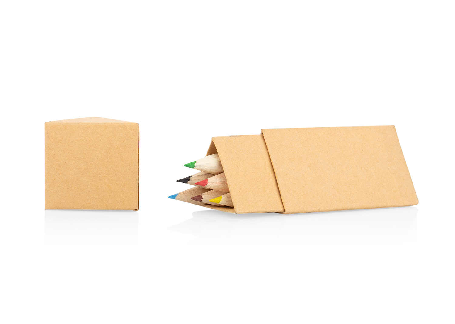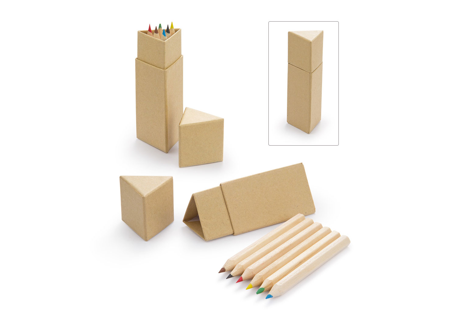 Set de colores x 6 unidades en estuche triangular de cartón con tapa.